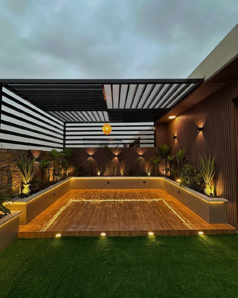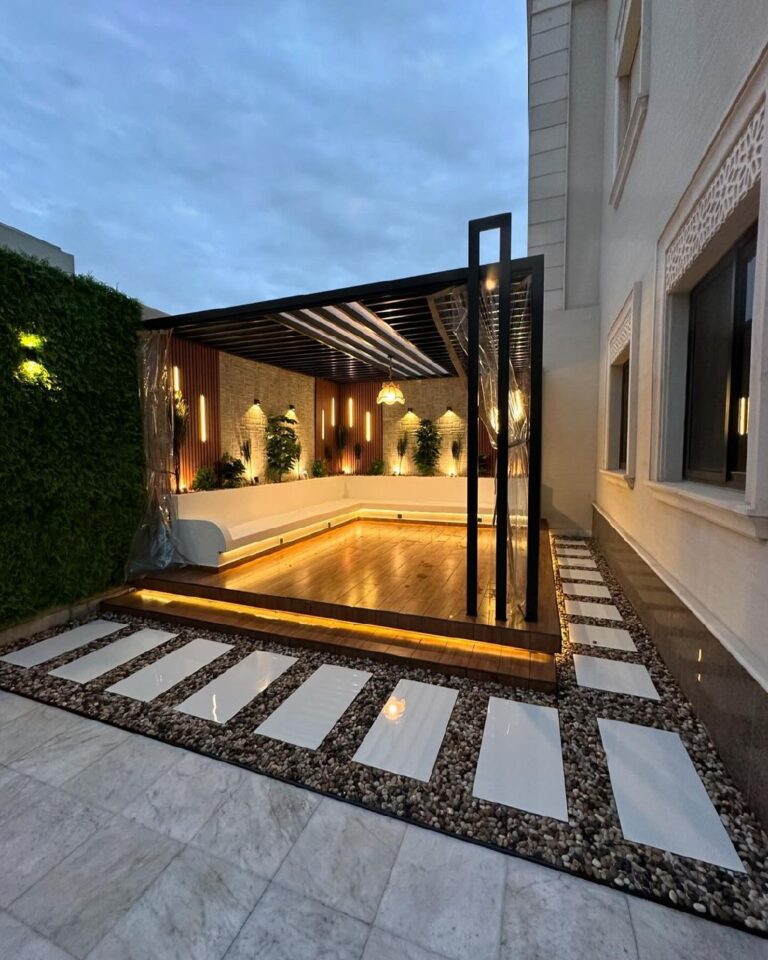 نحن في جنة بيتك لتنسيق الحدائق بالرياض نقدم خدمات تصميم وتنفيذ المظلات والجلسات الخارجية بأعلى معايير الجودة والاحترافية. نحرص على توفير تصاميم مبتكرة تجمع بين الجمال والوظيفة، لتوفير أماكن مريحة تحمي من أشعة الشمس وتضفي لمسة جمالية على المساحات الخارجية. نقدم مجموعة متنوعة من المظلات المصنوعة من خامات عالية الجودة لضمان المتانة وطول العمر، بالإضافة إلى تصميم جلسات خارجية أنيقة تناسب احتياجات عملائنا وتلبي جميع الأذواق.